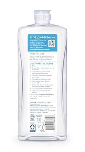 Specification: ECOS Dish Soap – Cuts Grease & Food Residue – No Harsh Chemicals – Hypoallergenic for Sensitive Skin – Recyclable – Sustainable Liquid Dishwashing Soap – Unscented, 25 Fl Oz