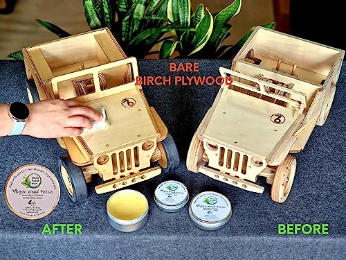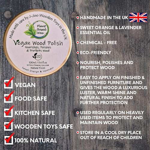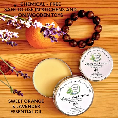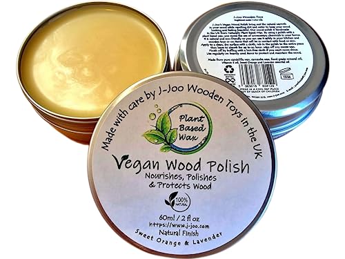 Vegan Wood Polish (60ML) – Plant Based Wax Wood Polish & Conditioner Enhances Wood Natural Beauty, Seal & Protect Wooden Furniture, Wooden Toys & Wooden Kitchen Appliances
