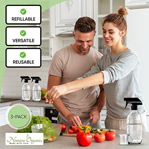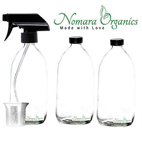 Nomara Organics Clear Glass Spray Bottles 3 x 500ml. Black trigger/Pump/Refillable/watering/organic/oil-vinegar/hair/cleaning products.